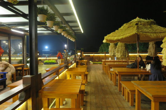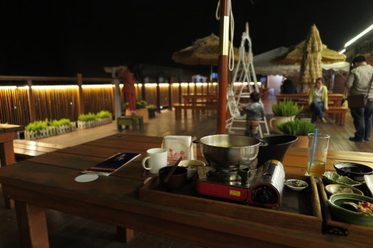 | 有室內區 也有室外區 一來天氣不錯 做是外吹吹自然風 欣賞夜色 而且戶外區也有表演喔~ 不過隨行友人說 我唱得比他們好 哈哈 真不好意思啊 |